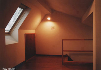1階から2階の屋根裏までリフォーム。特徴的なのが、階段を直して、一部、屋根裏部屋にリフォームしたこと。屋根裏の空間がかなり空いていたので、補強しながら3階の部分をキュービックな感じの屋根裏部屋に仕上げました。パリにあるような屋根裏部屋をイメージしながら、子供部屋として使われています。
